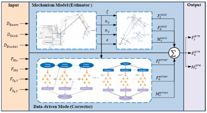 研究引入物理信息机器学习(Physics-Informed Machine Learning, PIML)方法,结合物理约束与数据驱动模型,实现对挖掘机作业阻力的精确建模与预测。该方法有效提升了建模精度,为挖掘机自动控制提供了可靠的作业负载估计手段。相关成果发表在中科院一区Top期刊Mechanical Systems and Signal Processing。