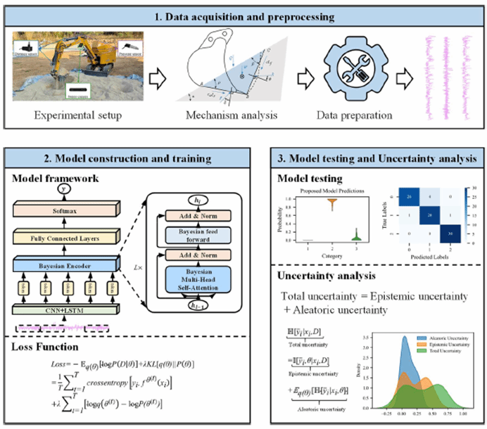 由于挖掘环境的高度不确定性,传统方法难以准确评估物料挖掘难度。IDEAL团队提出了一种基于贝叶斯深度学习(Bayesian Deep Learning, BDL)的方法,实现对不同物料的挖掘难度识别,同时对预测结果的不确定性进行量化。该研究为智能挖掘规划与决策提供了数据支持。相关成果发表在中科院一区Top期刊Journal of Industrial Information Integration。